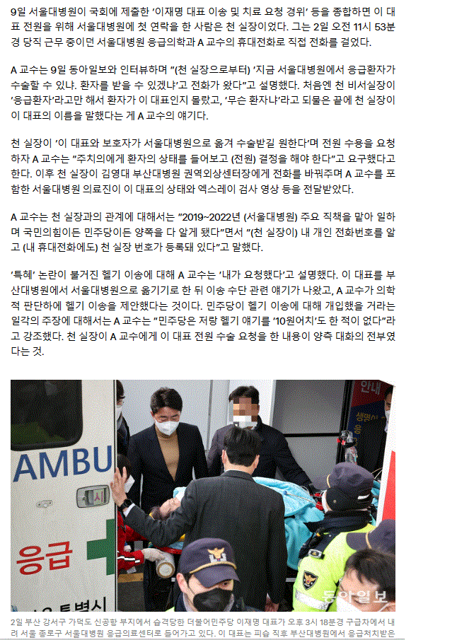 ‘특혜’ 논란이 불거진 헬기 이송에 대해 A 교수는 ‘내가 요청했다’