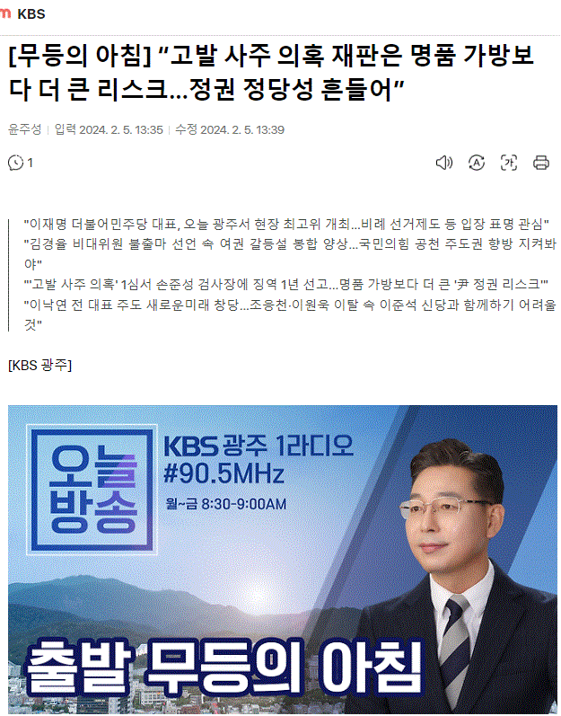 [무등의 아침] “고발 사주 의혹 재판은 명품 가방보다 더 큰 리스크…정권 정당성 흔들어”