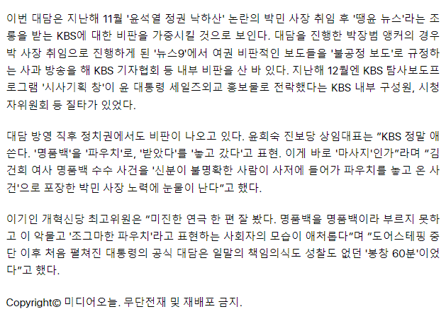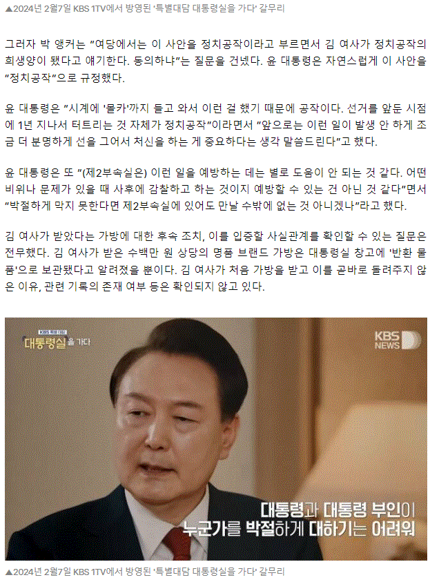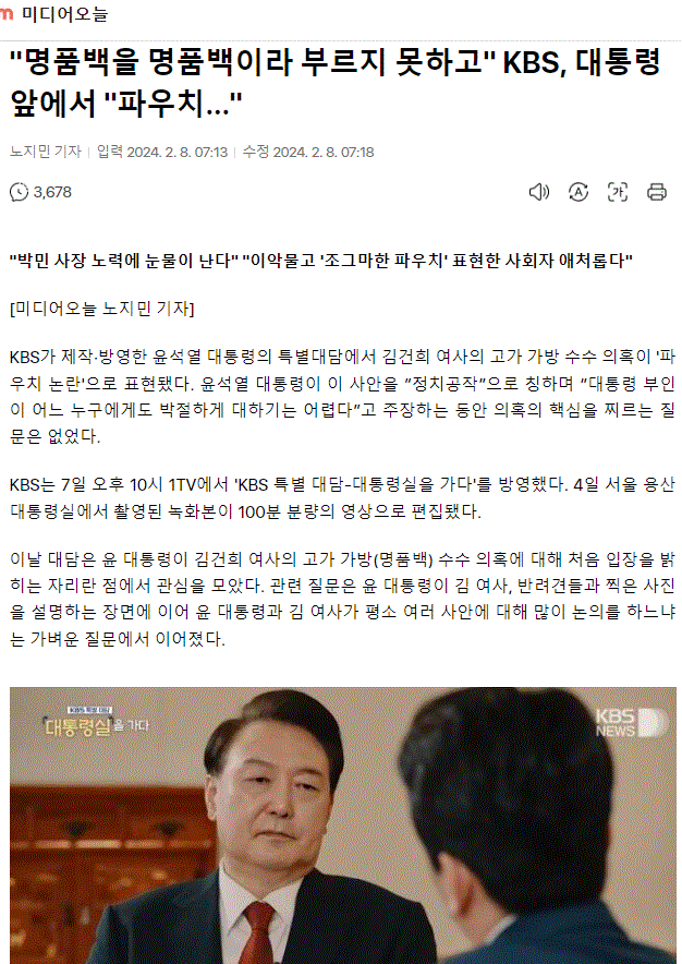 "명품백을 명품백이라 부르지 못하고" KBS, 대통령 앞에서 "파우치..."