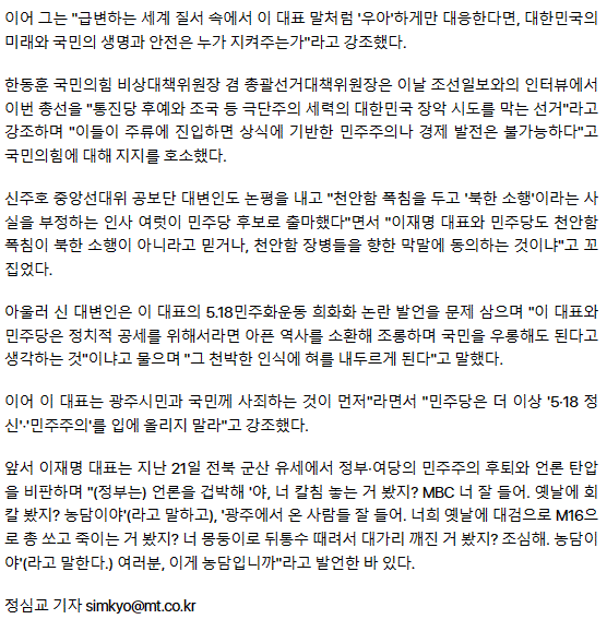 이언주 좋아하지 않지만 이 말은 백번천번 맞는 말입니다. 1인1표를 반대하는게 아니고 과정을 문제 삼는건데 정청래는 모른척하고 있네요.