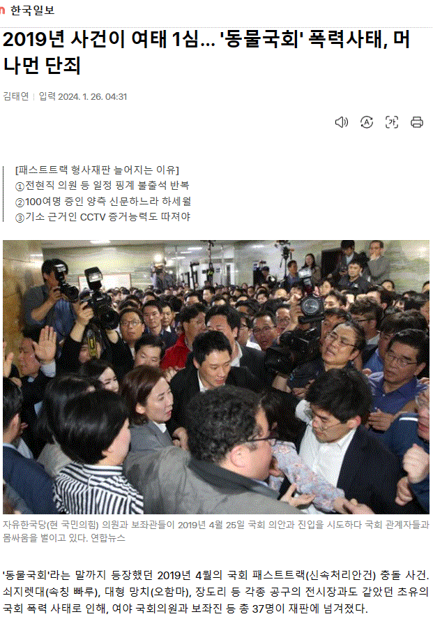 2019년 사건이 여태 1심... '동물국회' 폭력사태, 머나먼 단죄