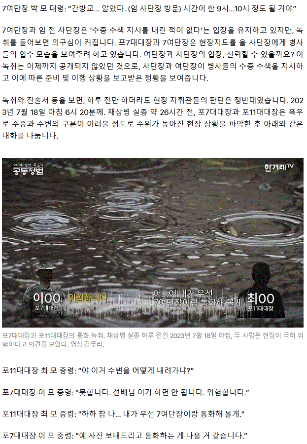 [단독] 채상병 사망 전, 녹취 음성 입수…“사단장께서 정상적으로”