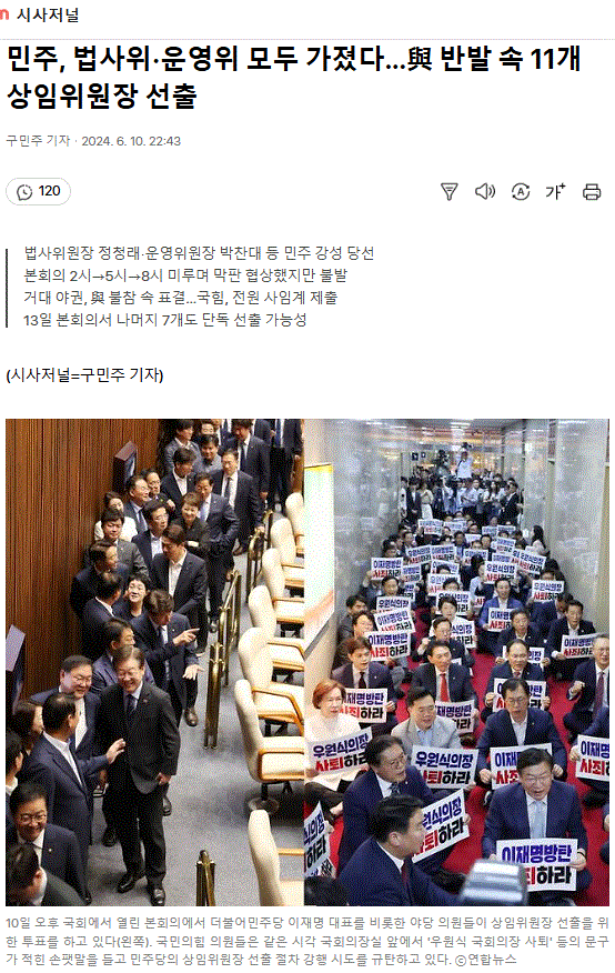 민주, 법사위·운영위 모두 가졌다…與 반발 속 11개 상임위원장 선출