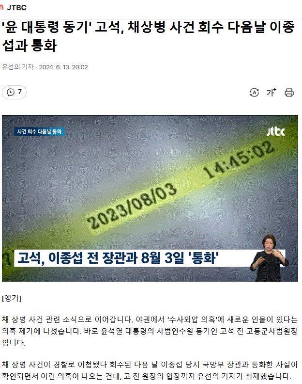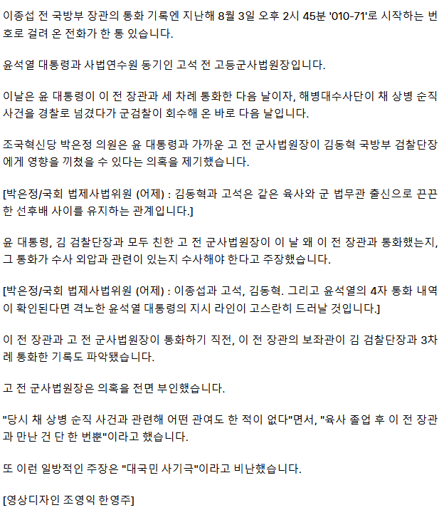 '윤 대통령 동기' 고석, 채상병 사건 회수 다음날 이종섭과 통화