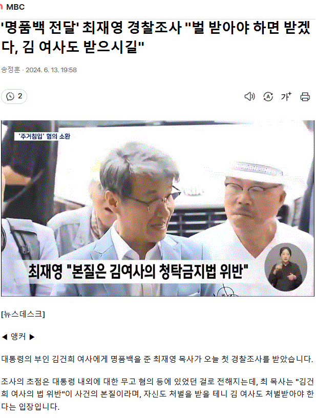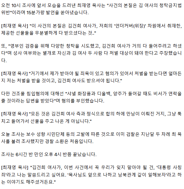 '명품백 전달' 최재영 경찰조사 "벌 받아야 하면 받겠다, 김 여사도 받으시길"