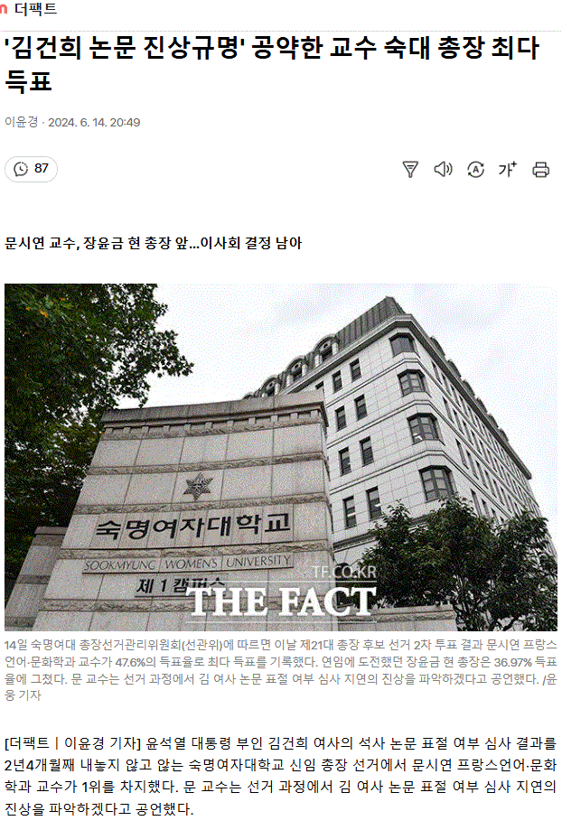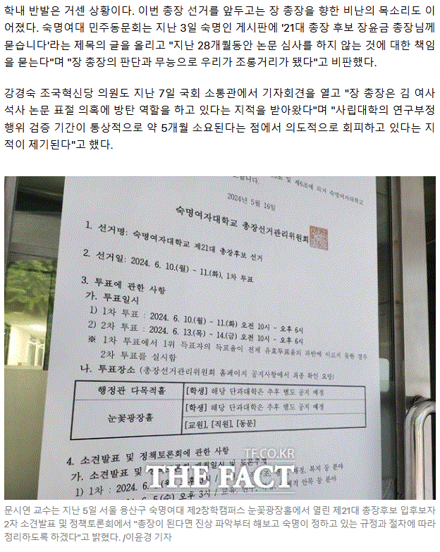 '김건희 논문 진상규명' 공약한 교수 숙대 총장 최다득표