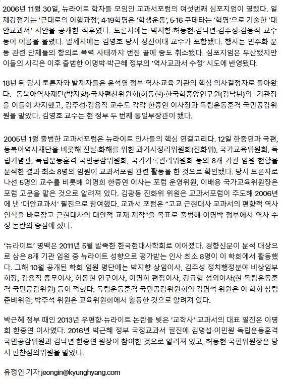 ‘역사교과서 수정’ 주도한 18년 전 인사들···윤 정부 역사교육 정책 핵심으로 등극