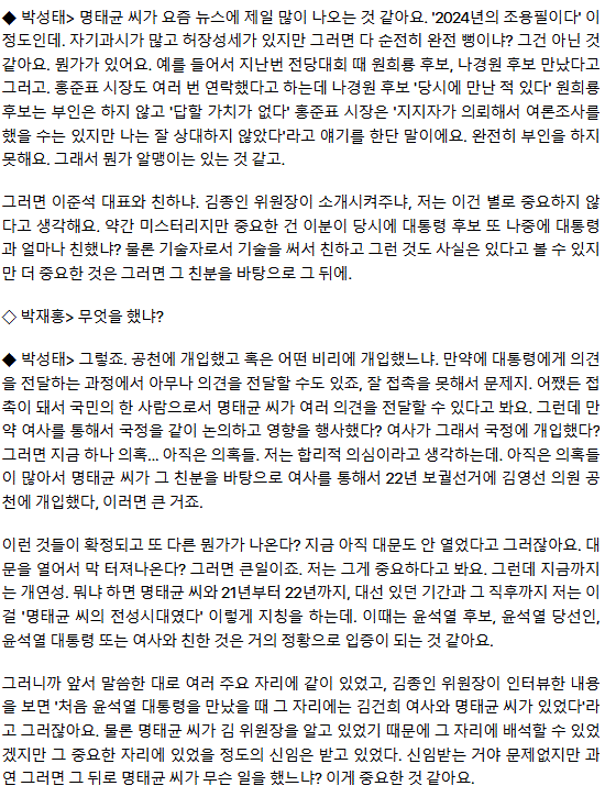 [단독] 명태균 "尹 부부, 경선 6개월간 아침마다 전화… 입당 시기도 물어"[한판승부]