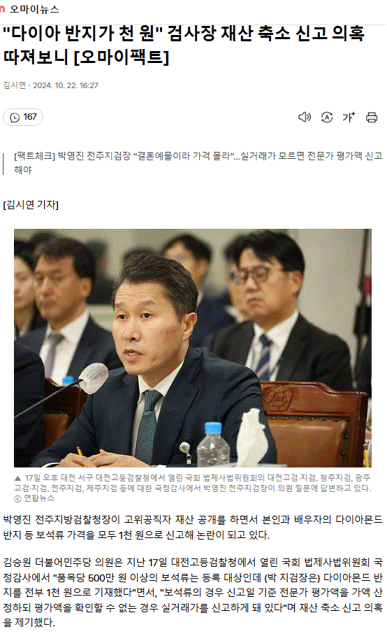 "다이아 반지가 천 원" 검사장 재산 축소 신고 의혹 따져보니 [오마이팩트]