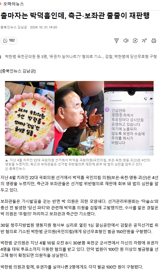 출마자는 박덕흠인데, 측근·보좌관 줄줄이 재판행