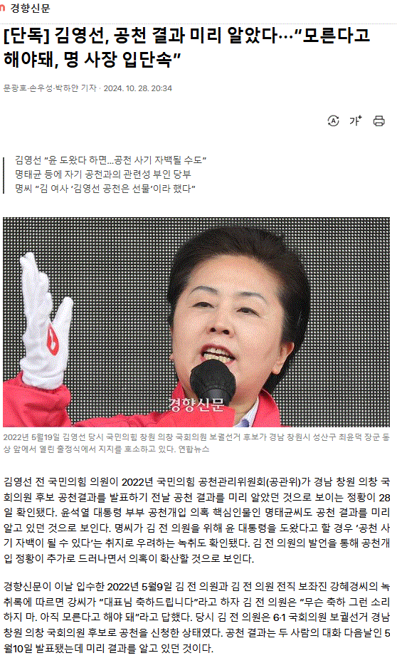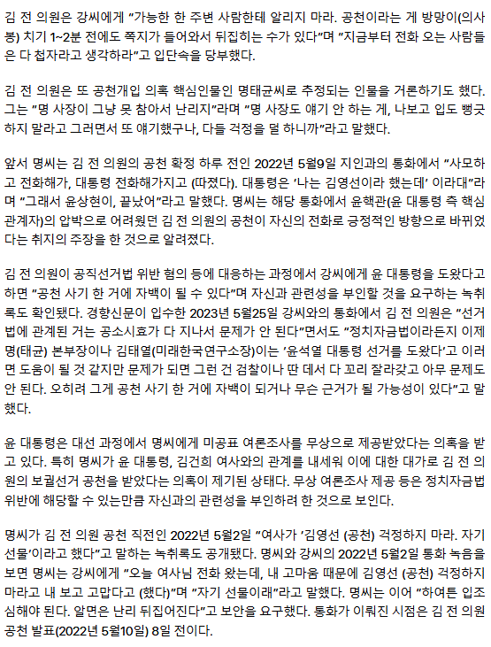[단독] 김영선, 공천 결과 미리 알았다··· “모른다고 해야돼, 명 사장 입단속”