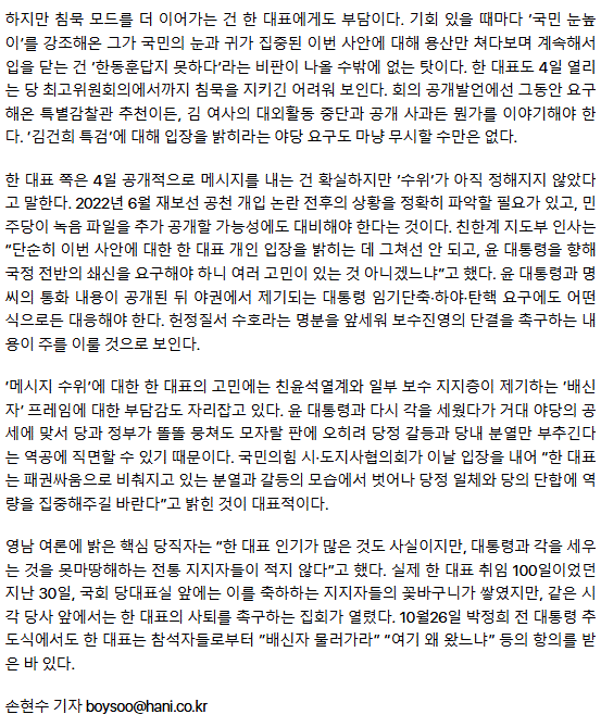 민주 "'김건희 특검' 與와 협의 열려있어… 특별감찰관 죽은 카드" ㅡ 국힘의원은 의원자격 없네