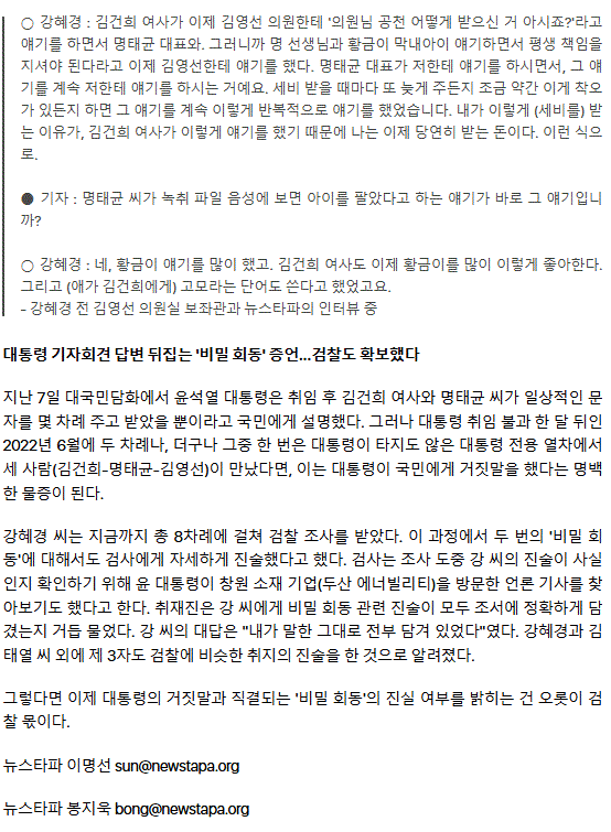"윤석열 취임 직후, 김건희-명태균 두 차례 몰래 만났다"