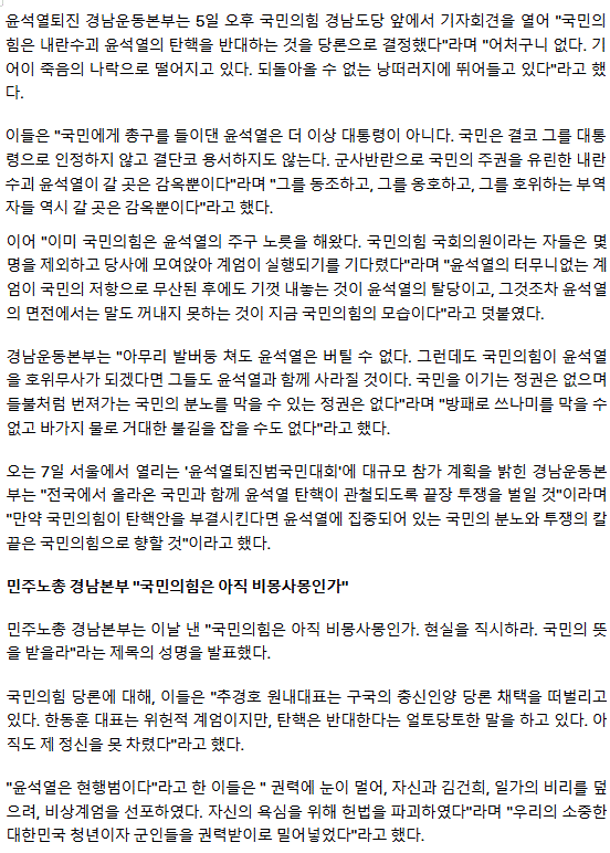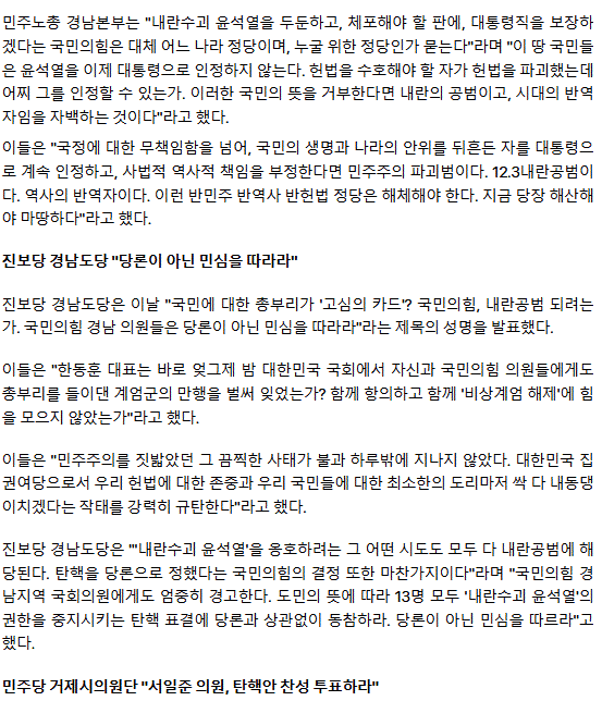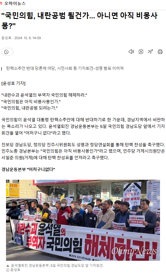 "국민의힘, 내란공범 될건가... 아니면 아직 비몽사몽?"