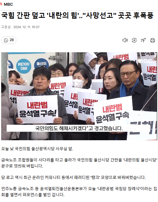 국힘 간판 덮고 '내란의 힘'‥ "사망선고" 곳곳 후폭풍
