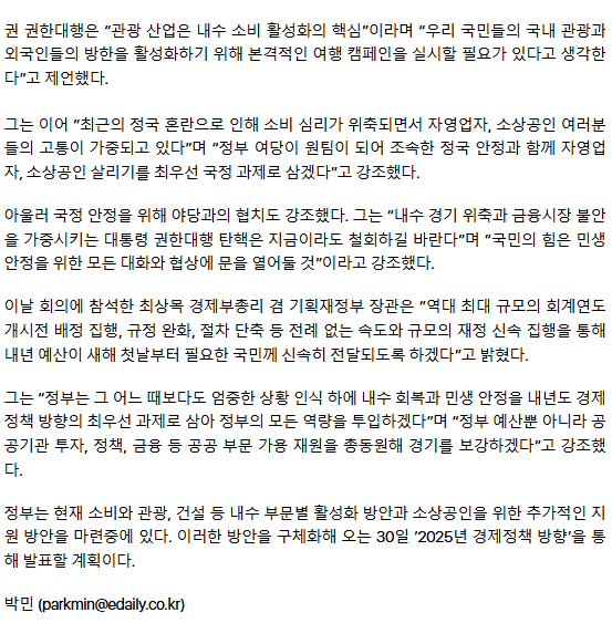 與 “내년 예산, 시장 예상 뛰어넘는 파격적 조기 집행해야”ㅡ 할 일 못하고 주장만 하냐