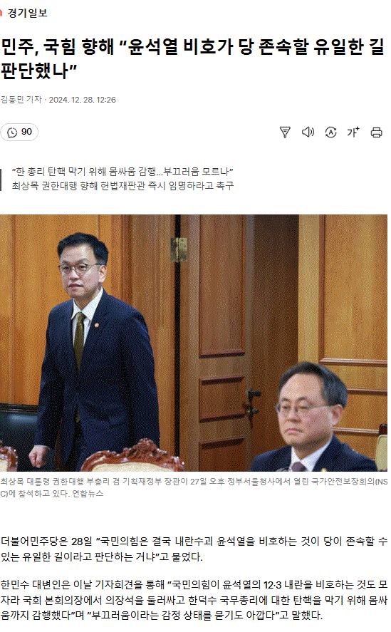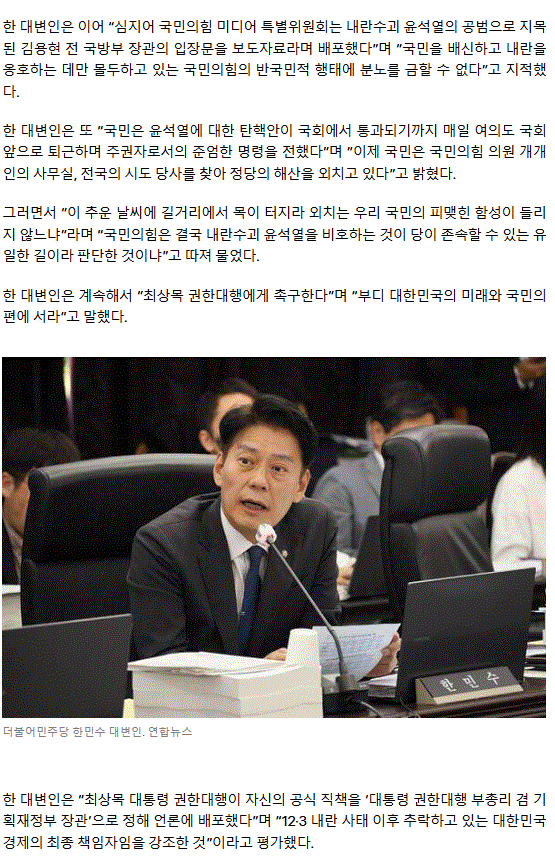 국힘 "韓 탄핵은 정부 붕괴 시도" vs 민주 "與 인사들 내란선전죄로 고발"ㅡ계엄할때 정부 붕과됐어