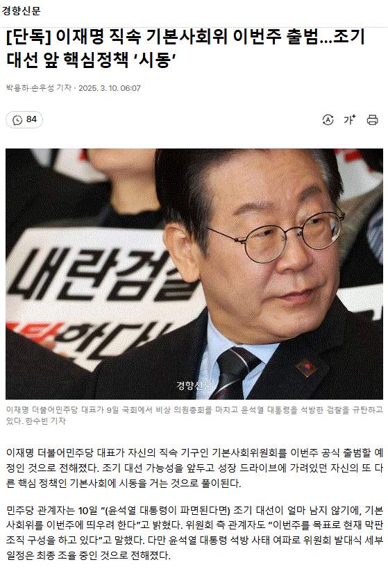 [단독] 이재명 직속 기본사회위 이번주 출범… 조기 대선 앞 핵심정책 ‘시동’
