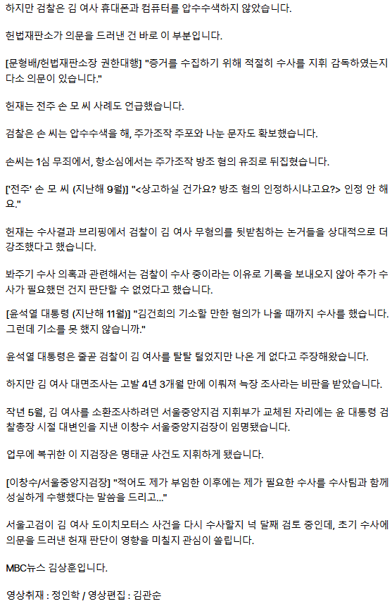 헌재 "김건희 수사 다소 의문"‥ 왜 압수수색 안 했나?ㅡ 거짓말하는 검찰, 속아주는 헌재