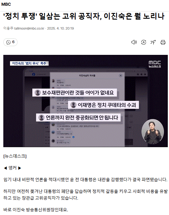 '정치 투쟁' 일삼는 고위 공직자, 이진숙은 뭘 노리나