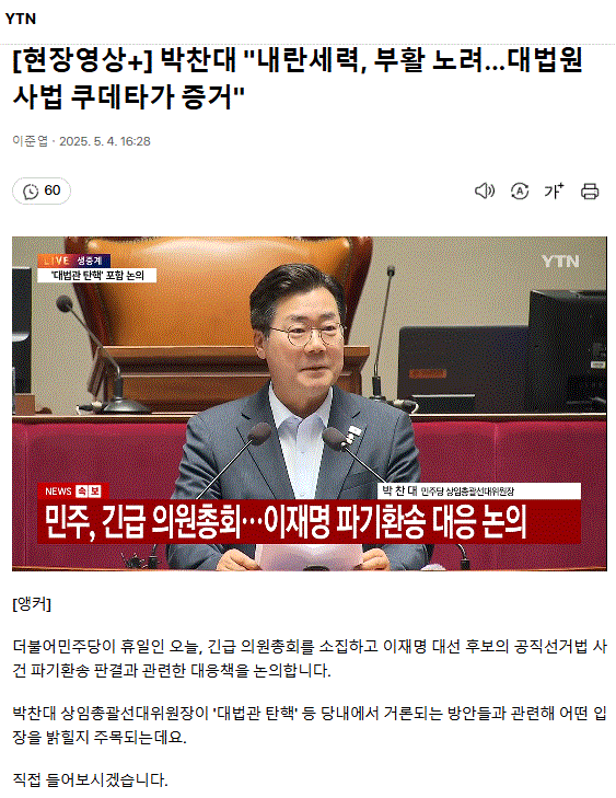 [현장영상+] 박찬대 "내란세력, 부활 노려... 대법원 사법 쿠데타가 증거"