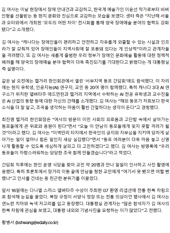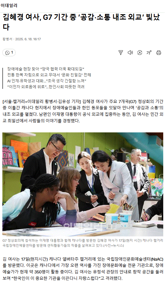 김혜경 여사, G7 기간 중 ‘공감·소통 내조 외교’ 빛났다