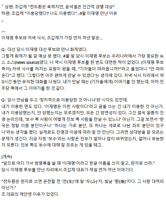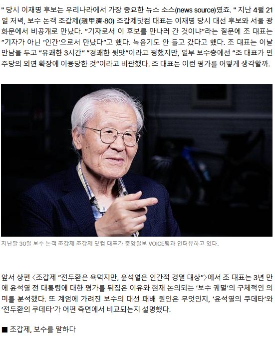 조갑제 “이용당했다? 나도 이용했다”… 4월 이재명 만난 이유