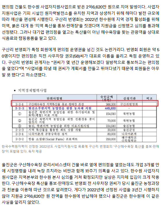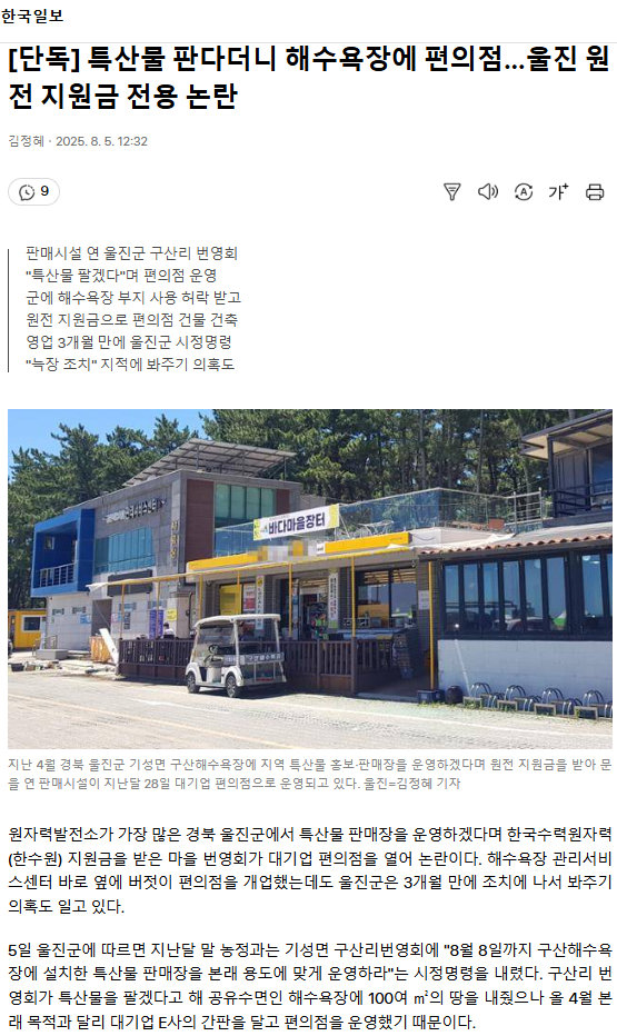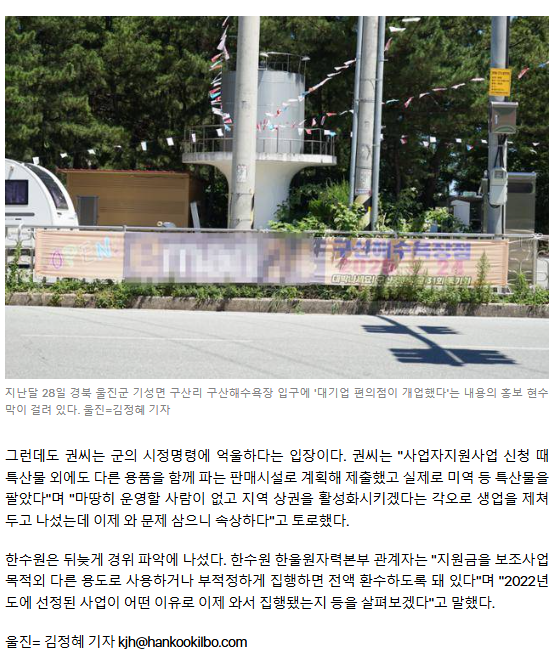 [단독] 특산물 판다더니 해수욕장에 편의점… 울진 원전 지원금 전용 논란