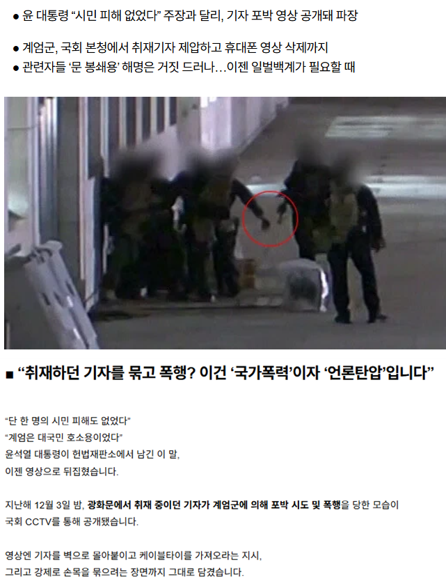 계엄군, 국회 본청에서 취재기자 제압하고 휴대폰 영상 삭제까지 ㅡ 뉴스토마토 유지웅기자