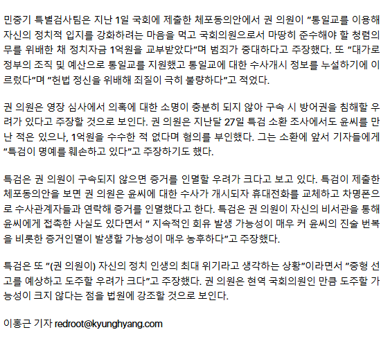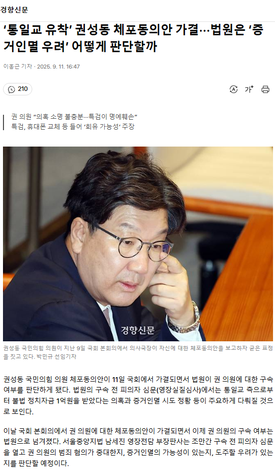 ‘통일교 유착’ 권성동 체포동의안 가결···법원은 ‘증거인멸 우려’ 어떻게 판단할까