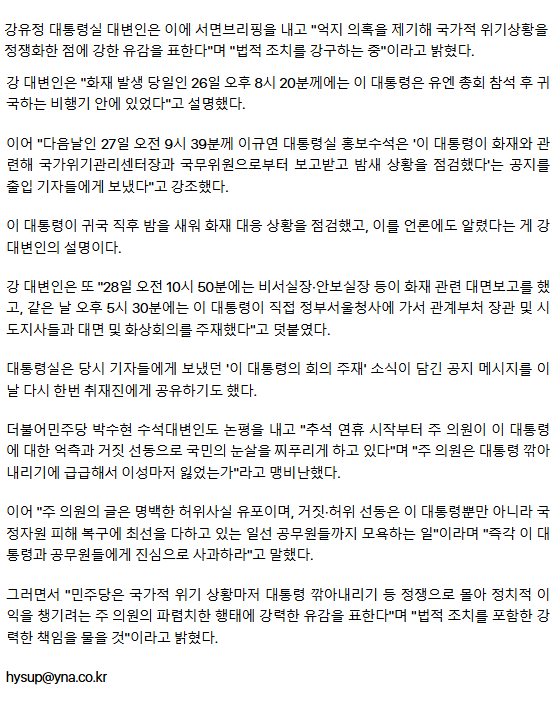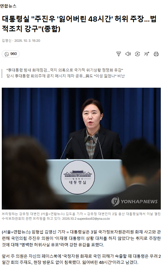 대통령실 "주진우 '잃어버린 48시간' 허위 주장… 법적조치 강구" (종합)
