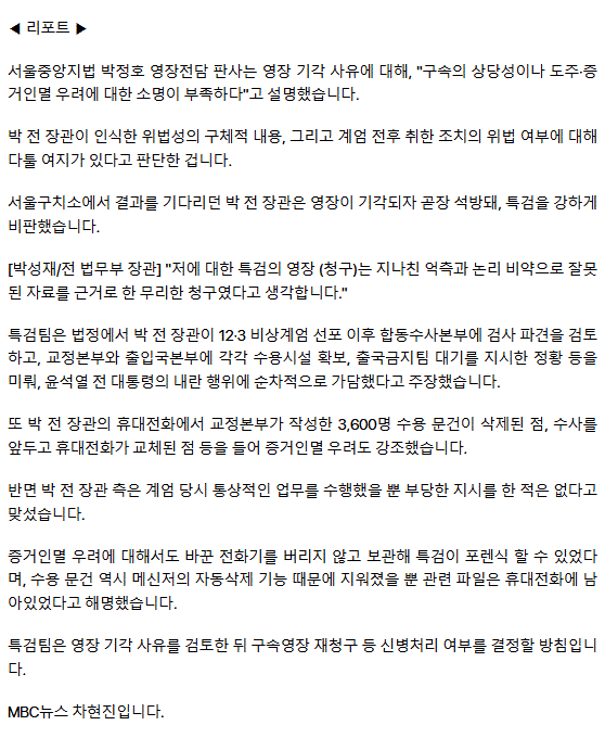박성재 영장 기각‥"도주·증거인멸 소명 부족"ㅡ 조희대가 손 쓴걸까