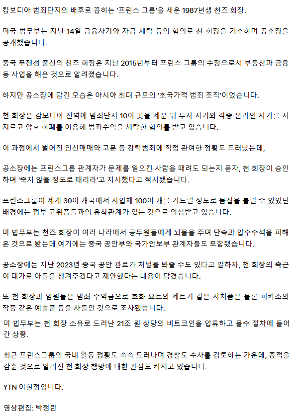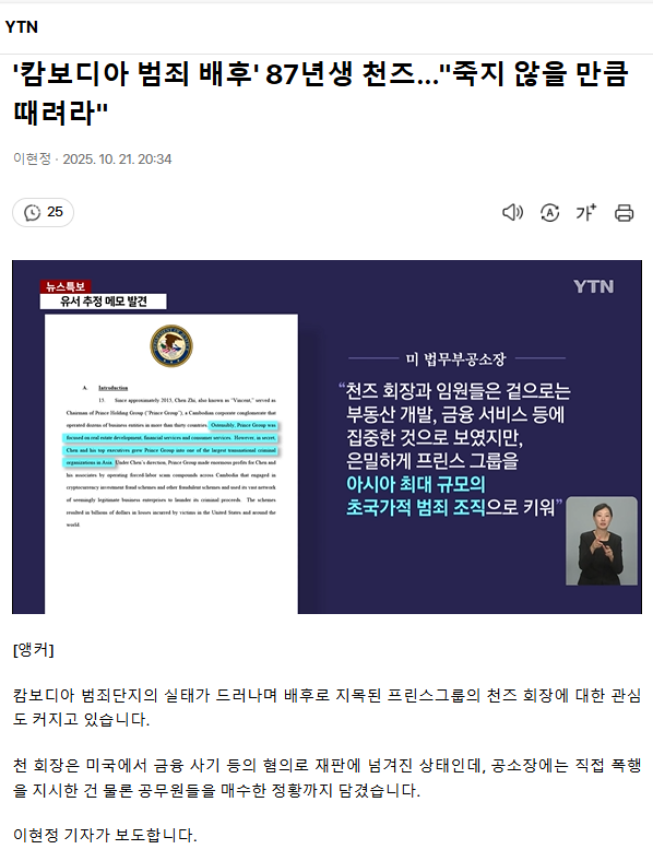 '캄보디아 범죄 배후' 87년생 천즈... "죽지 않을 만큼 때려라"ㅡ 천즈도 죽지 않을 만큼 좀 맞자