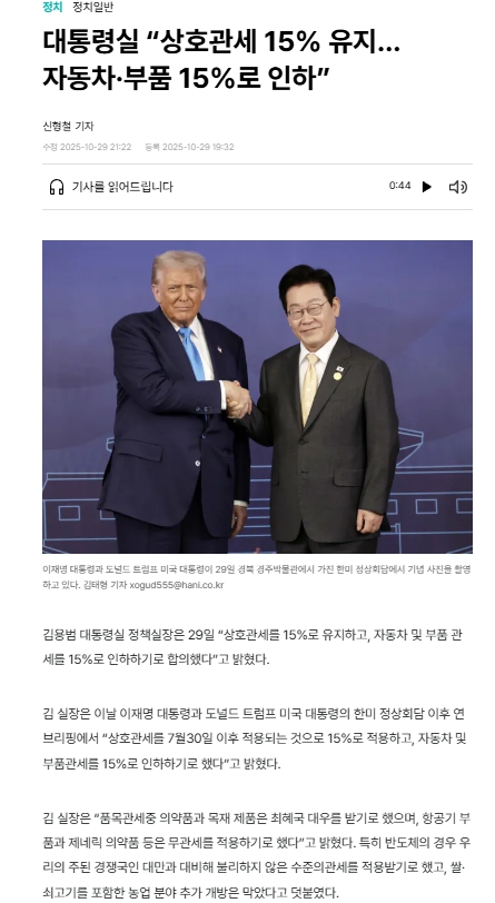 미국과의 관세협상은 성공적 대통령님외 정부담당자분들 수고많으셨습니다