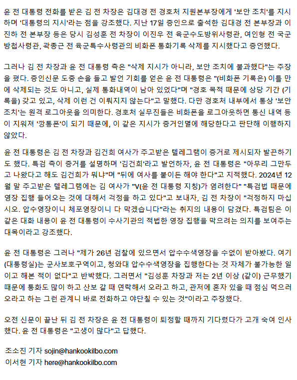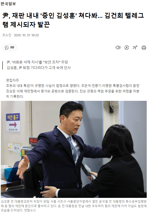 尹, 재판 내내 '증인 김성훈' 쳐다봐… 김건희 텔레그램 제시되자 발끈