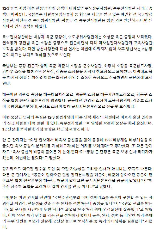 국방부, 3성 장군 20명 인사 단행… 비육사 출신 최대폭 선발
