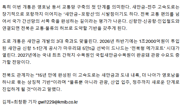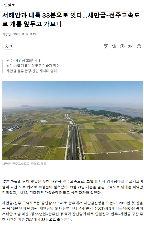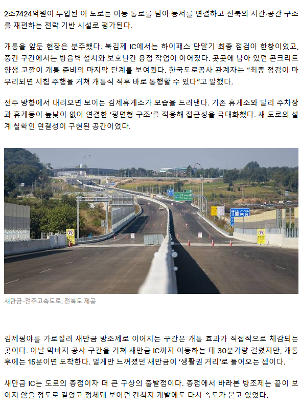서해안과 내륙 33분으로 잇다… 새만금-전주고속도로 개통 앞두고 가보니