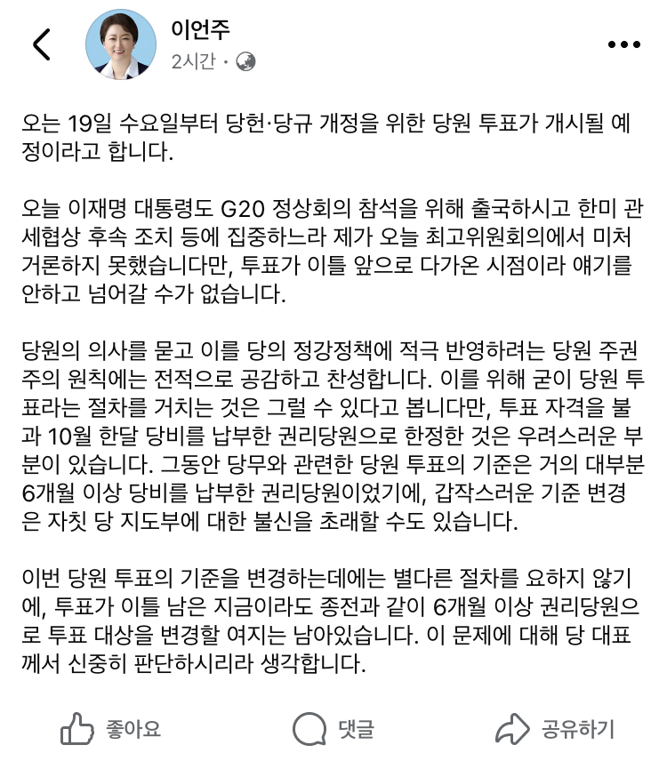 국회에 무효청원을 올리거나 민주당홈에 당헌당규개정 반대의견 당대표 원내대표 불신임과 사퇴요구 최고위전원사퇴 비대위체계 전환요구를 해야겠지요 민주당의 꼴이 이 지경인 것은 뮨파에 당원들이 속은것이 원인입니다