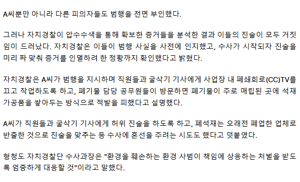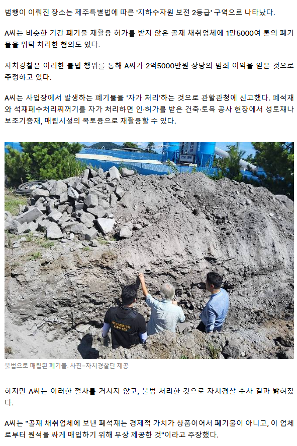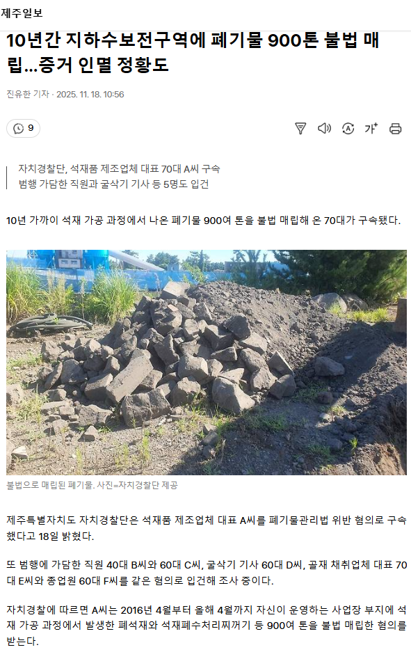 10년간 지하수보전구역에 폐기물 900톤 불법 매립… 증거 인멸 정황도