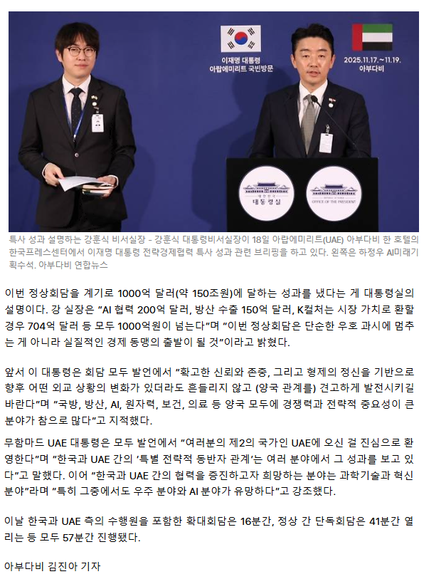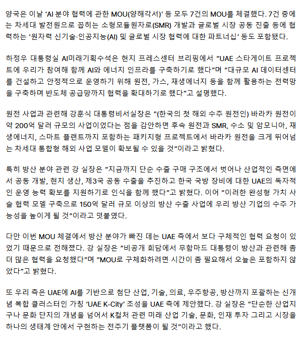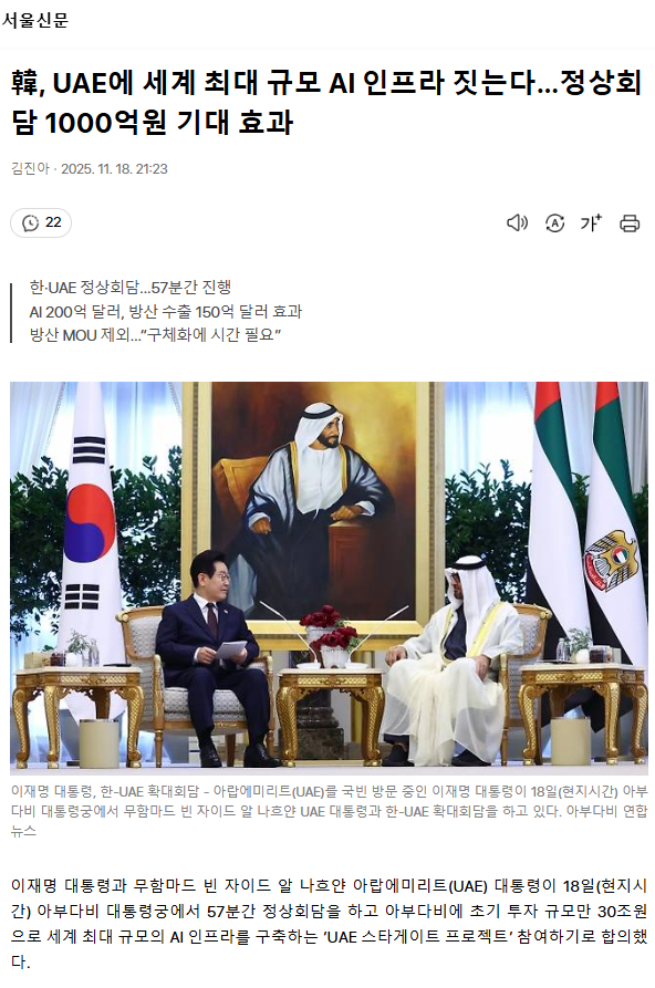 , UAE에 세계 최대 규모 AI 인프라 짓는다정상회담 1000억원 기대 효과