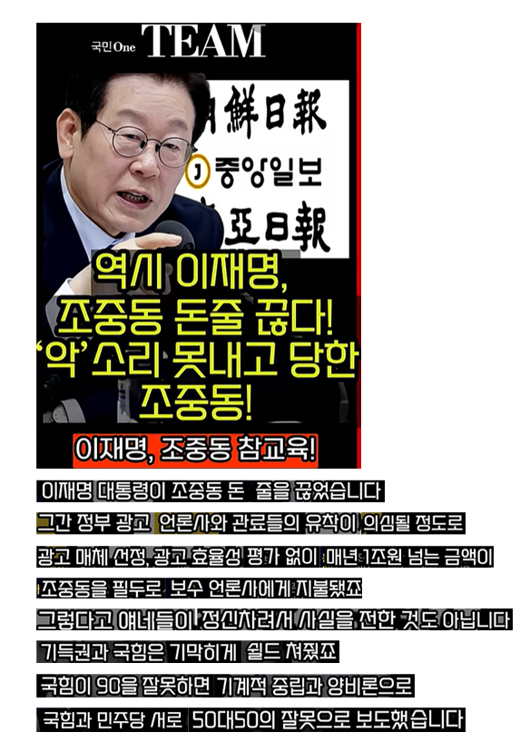 역시 이재명, 조중동 돈줄 끊다! '악'소리 못내고 당한 조중당! #이재명대통령ㅡ 5년 너무 짧아