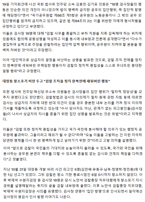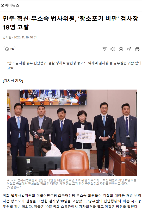 민주·혁신·무소속 법사위원, '항소포기 비판' 검사장 18명 고발