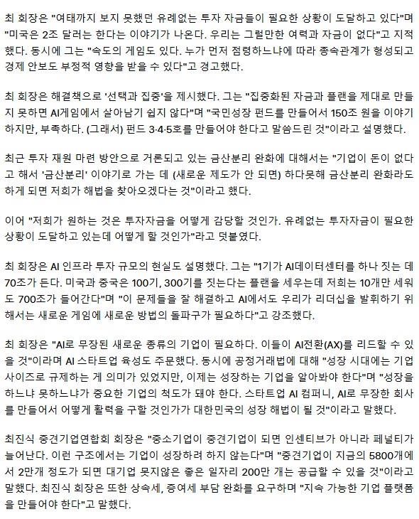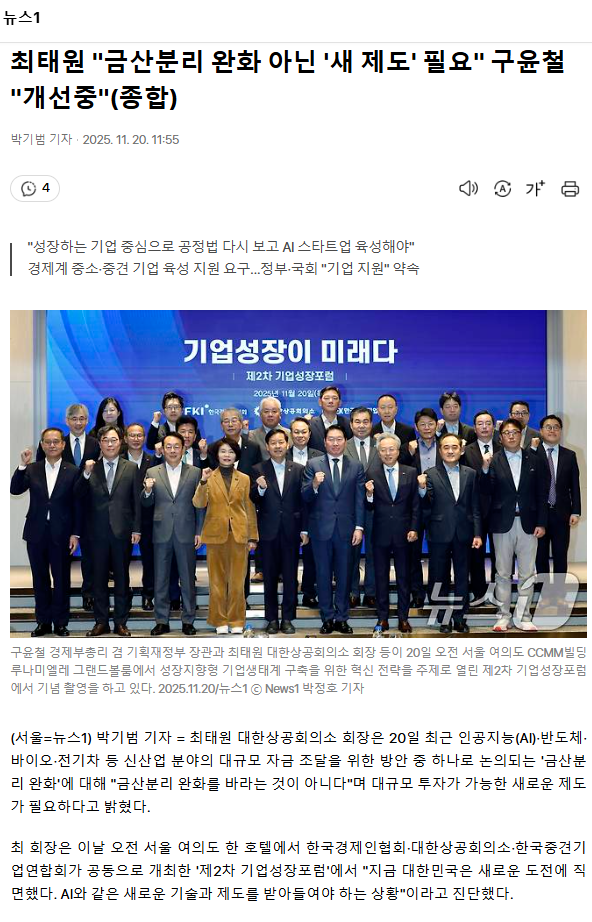 최태원 "금산분리 완화 아닌 '새 제도' 필요" 구윤철 "개선중" (종합)