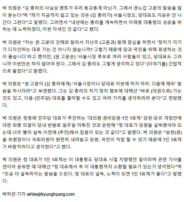 그러게요 왜 당대표를 디스하게 될까요? 당대표를 응원할 수 있으면 참 좋겠는데 그럴수 없는 현실이 안타깝네요