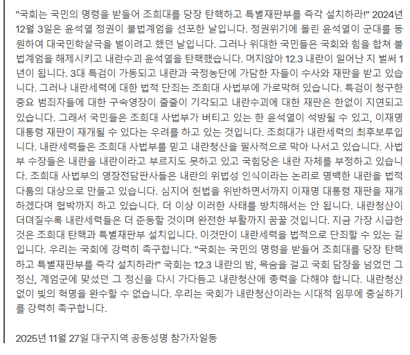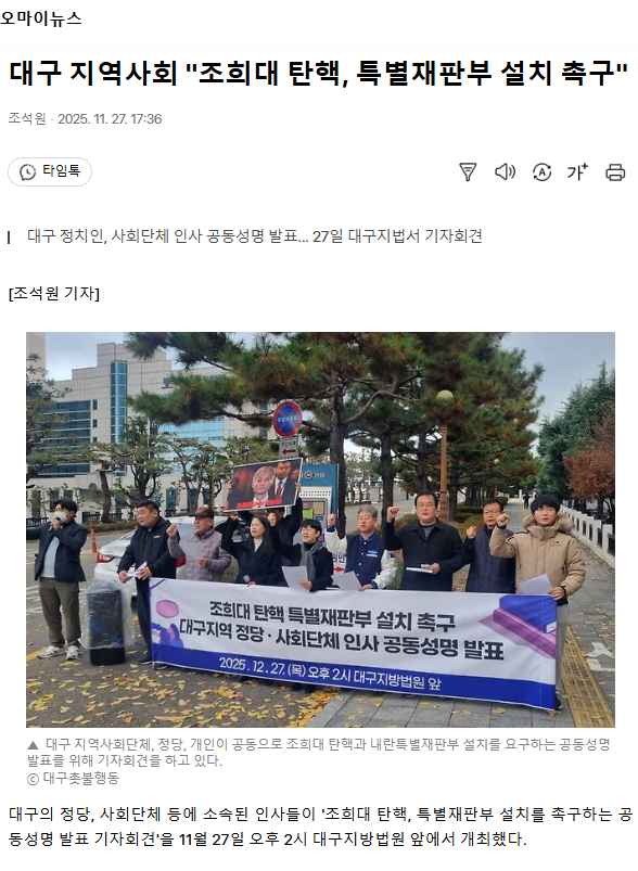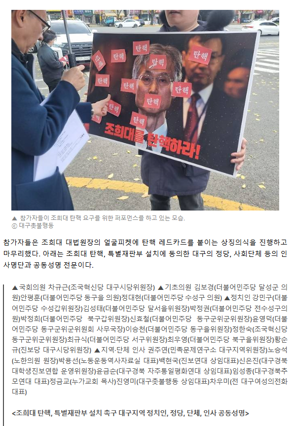 대구 지역사회 "조희대 탄핵, 특별재판부 설치 촉구"