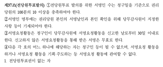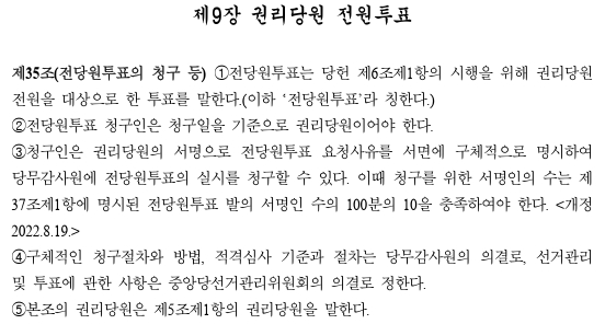 1. 전당원투표 발의 위해 30일내 권리당원 10% 서명 필요( 제35조 3항)