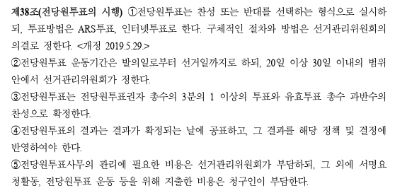 2. 전당원투표는 발의부터 선거까지 20~30일 이내에 정한다(제38조 2항)