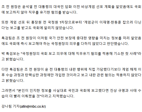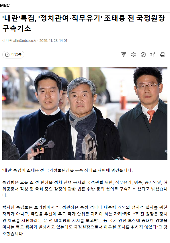 '내란'특검, '정치관여·직무유기' 조태용 전 국정원장 구속기소