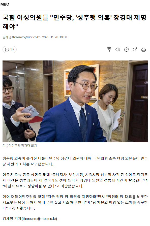 국힘 여성의원들 "민주당, '성추행 의혹' 장경태 제명해야"ㅡ 미친거아냐