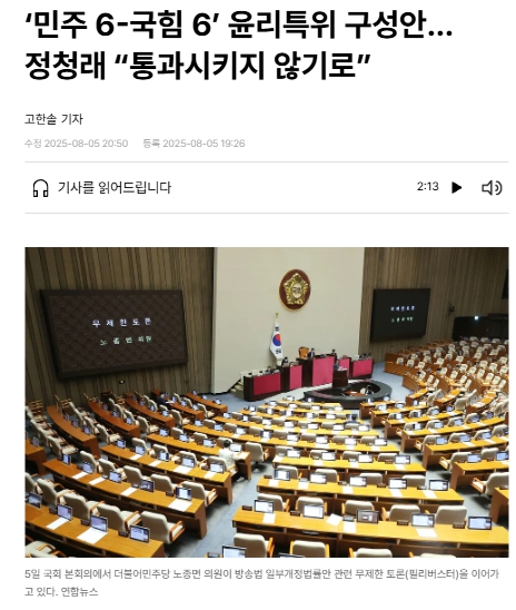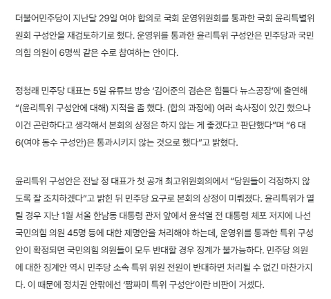윤리위 6:6 정청래가 통과시키지 않기로 말해서 당원들이 환호했었는데